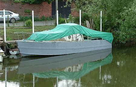 But, despite all this hard work David was to suffer a major blow when Thunderchild sank on her moorings a few years back. She spent almost 2 weeks, three quarters under water, lying at an angle of about 30 degrees, while David decided how he could rescue her. In the event, some plywood, nails and two sump pumps were sufficient to raise her from her murky resting place. An hour after making a start Thunderchild was afloat again but everything aboard had been wrecked, including the engine. “I still don’t know why she sank”, recalls David ruefully. “There were no leaks that I could see”. So, it was back to cleaning (the bilges and most of the topsides were full of river mud) and stripping out. Then just before Christmas 2006 she sank again when the stern mooring line snagged a tree during rapidly rising floodwater. Luckily, the water soon subsided sufficiently for the plywood, nails and sump pump rescue process to play their part successfully for a second time.