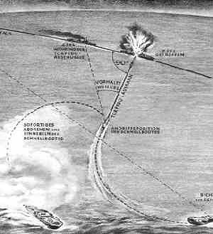 Having been alerted by the earlier Lufwaffe report, however, all this activity had also attracted the attention of German shore-based surveillance systems and, as soon as it was completely dark (at about 2100 hours GMT) the 5th and 9th Schnellboot Flotillas, comprising six and three boats respectively, slipped out of Cherbourg. They evaded the small covering force of MTBs without difficulty and then, steaming at 36 knots under radio silence, soon covered the 90-odd nautical miles to the Northwest to break through the outer defensive screen across Lyme Bay.
