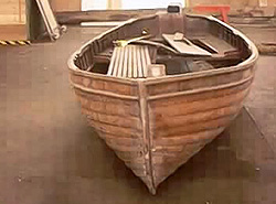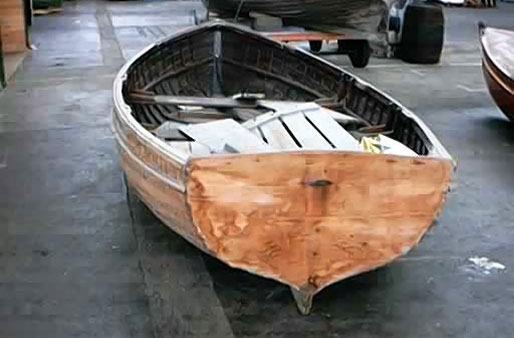 Fig. 1 to the left and Fig. 2 below show the dinghy in Number 4 Boat house prior to restoration