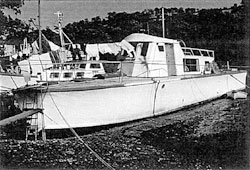 Little is known about HSL 102 after her sale from the Admiralty until she was spotted as a house boat in Dartmouth in 1993. At that time she was known simply as EXCERVUS and from all accounts had been at Mill Creek for over 10 years. When EXCERVUS was up for sale, Phil Clabburn purchased her and had her towed to Plymouth where she was lifted out and taken by road to the then home of Powerboat Restorations in Fawley, Southampton, the base of National Power PLC who generously provided the space and facilities for her restoration.